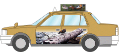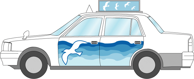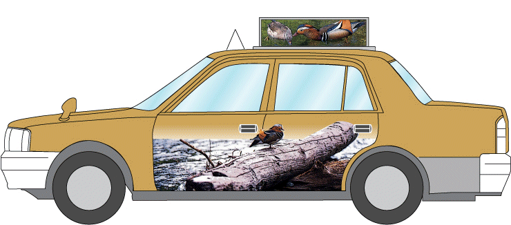 タクシー車体広告には2つのタイプがあります.「ルーフトッパー」は「行灯(あんどん)」とも呼ばれ,車の屋根の上に載る内照式のディスプレイです.夜間でも強く訴えることができます.「ドアラッピング(ドア広告)」はタクシーの4枚のドアをすべてラッピングする東京では比較的新しいタイプの広告です.掲載面積が広いので大変よく目立ちます.現在東京で利用できるのはドアラッピングのみです.