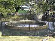 | 久地の円筒分水は二ヶ領用水の水を村々に一定の割合で公平に分配するために作られた設備で,国に登録された有形文化財. |